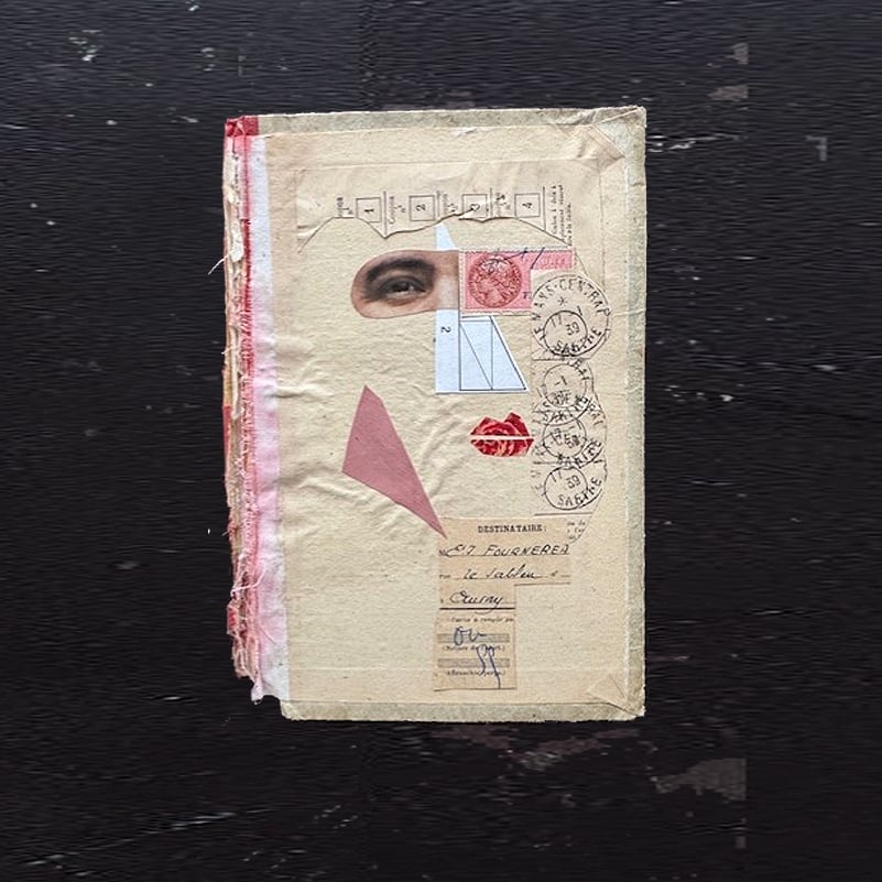 Found French ephemera on vintage book cover, from my residency at Chateau Villeseque, Penne d'Agenais. France. Unframed.